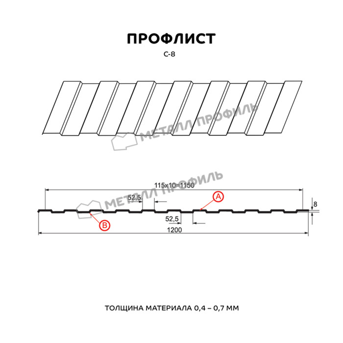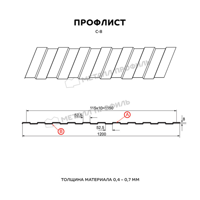 Профлист Металл Профиль С-8 0,45 Полиэстер RAL 3009 Красная окись | A