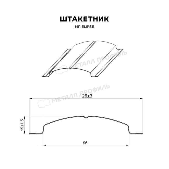 Штакетник Металл Профиль ELLIPSE-T 0,45 Полиэстер RAL 7004 Серый